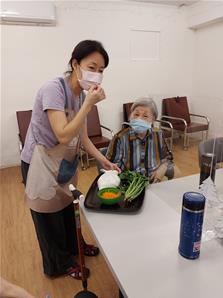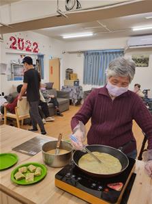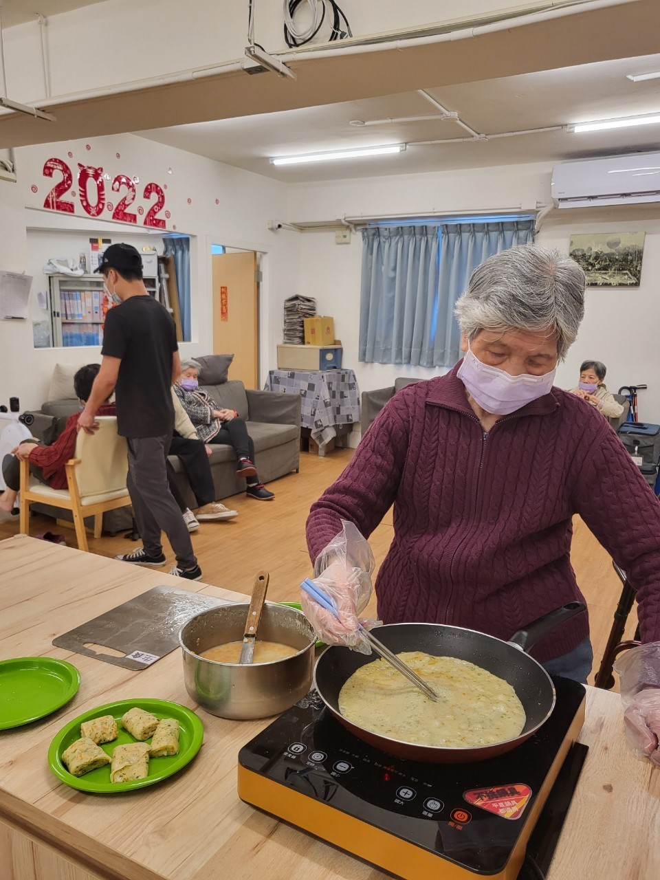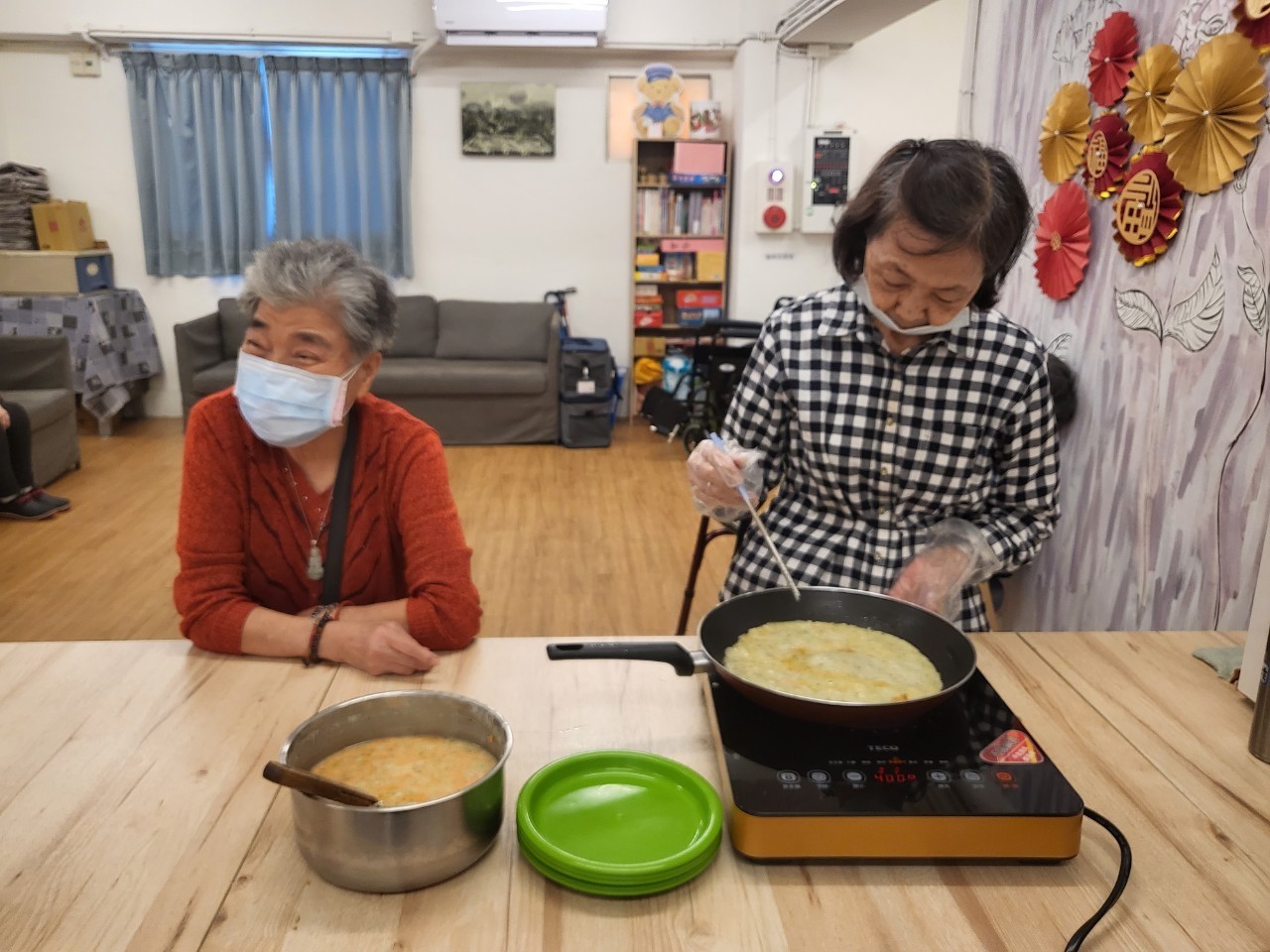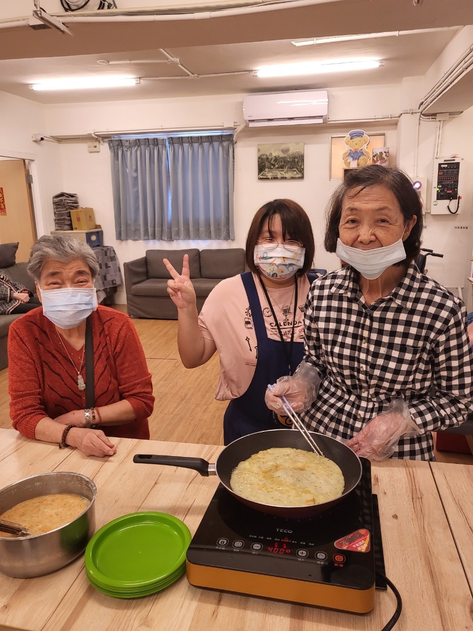 每月2-3次的烹飪課程,增強長輩五官認知,老師從材料開始到食材的處理、調勻、煎都讓長輩來動手做及共同參與,增加完成作品的成就感。