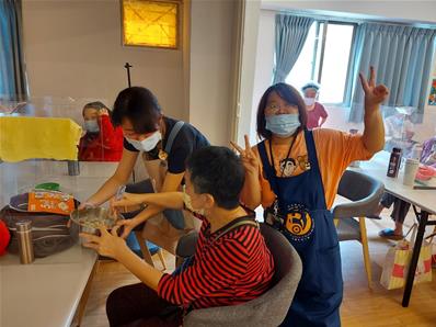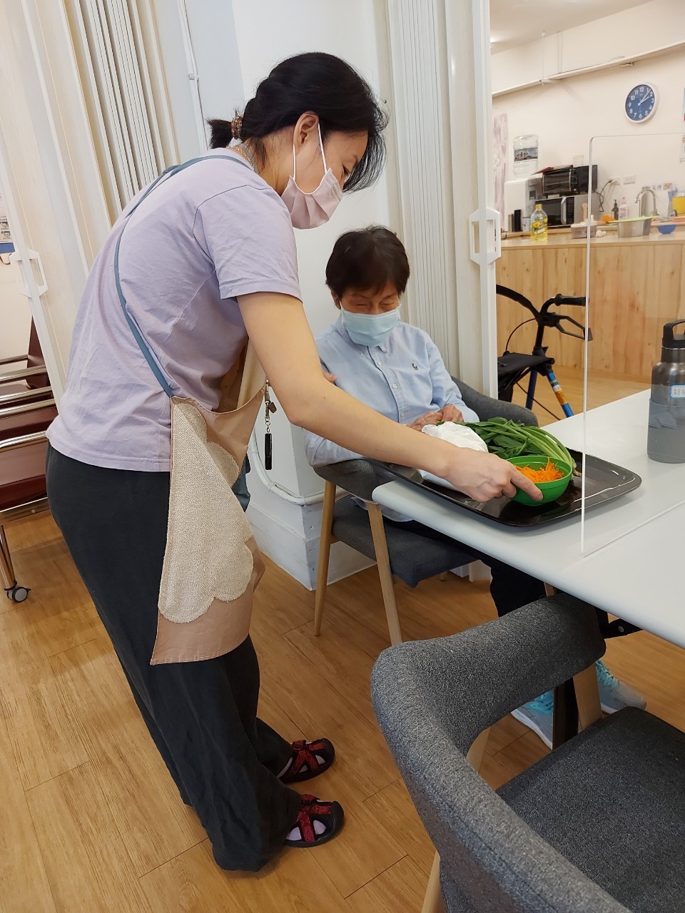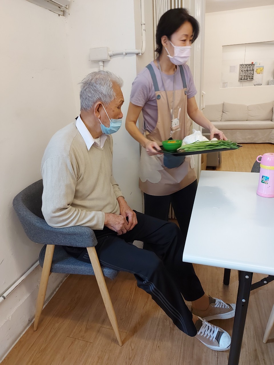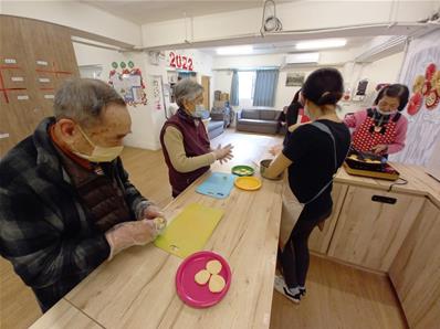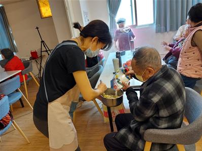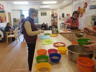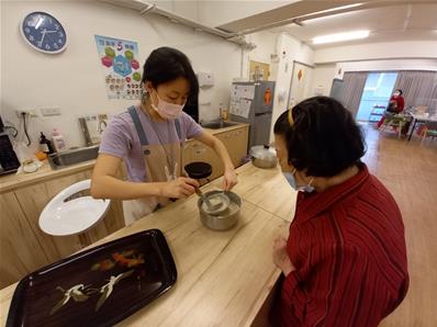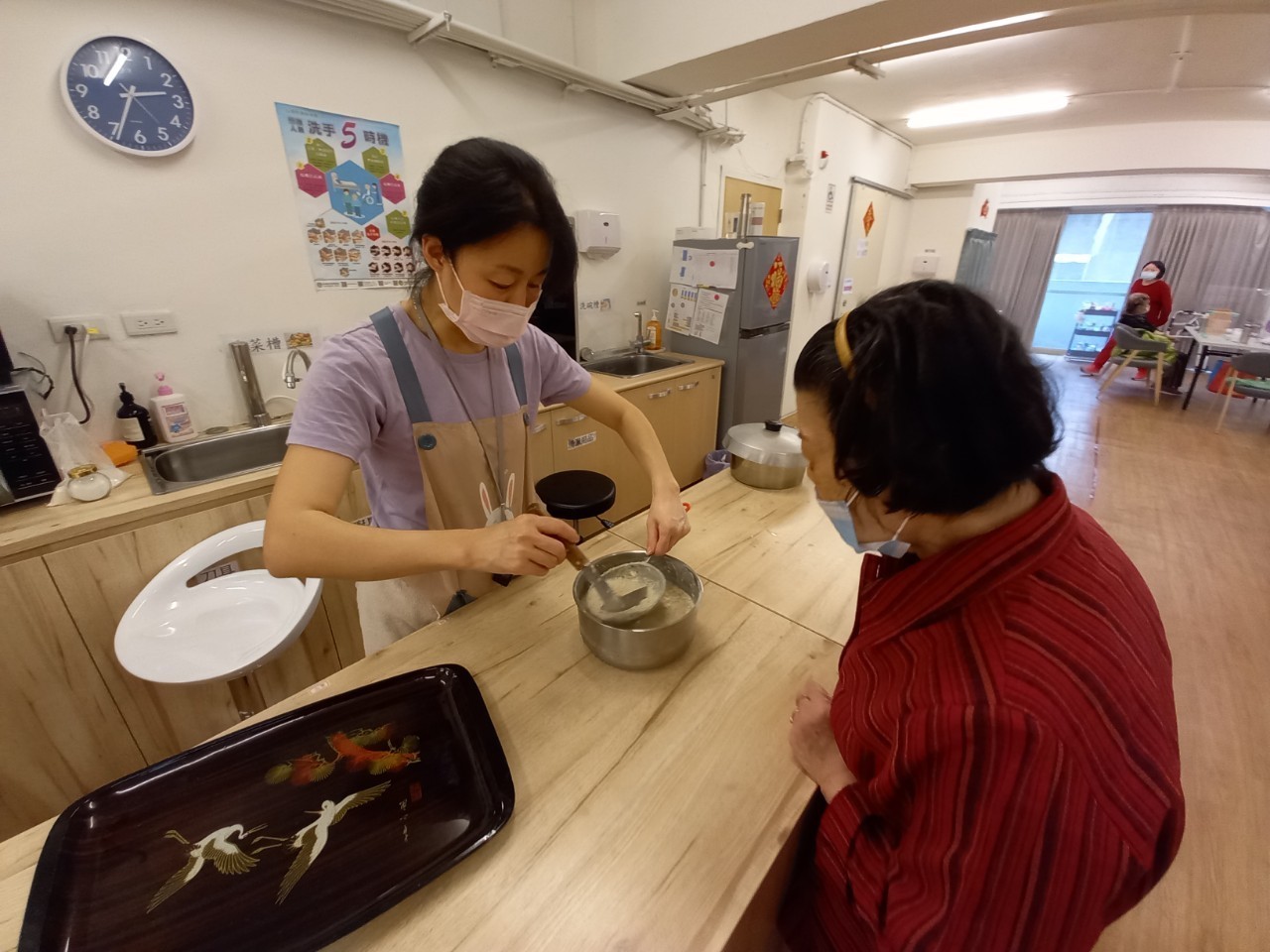 每月2-3次的烹飪課程,增強長輩五官認知,老師從材料開始到食材的處理、調勻、煎都讓長輩來動手做及共同參與,增加完成作品的成就感。