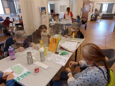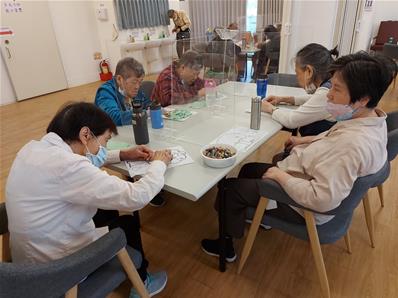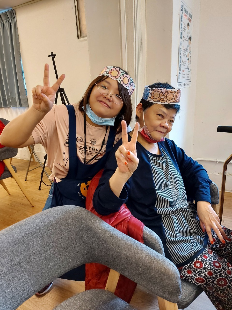 藉由美術勞作,來增強長輩們的手部精細動作,也可刺激五官認知,活動目的是增加活動參與及與環境互動,延長對活動的注意力及持續度,讓長輩易於完成,增進自信心,也可增加與其他同儕互動的機會。