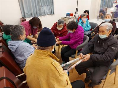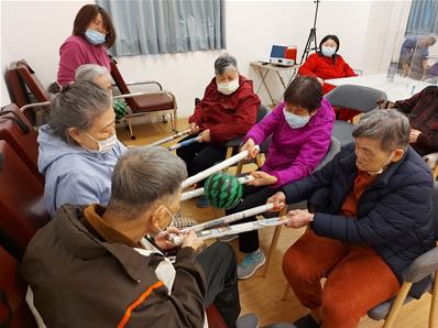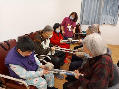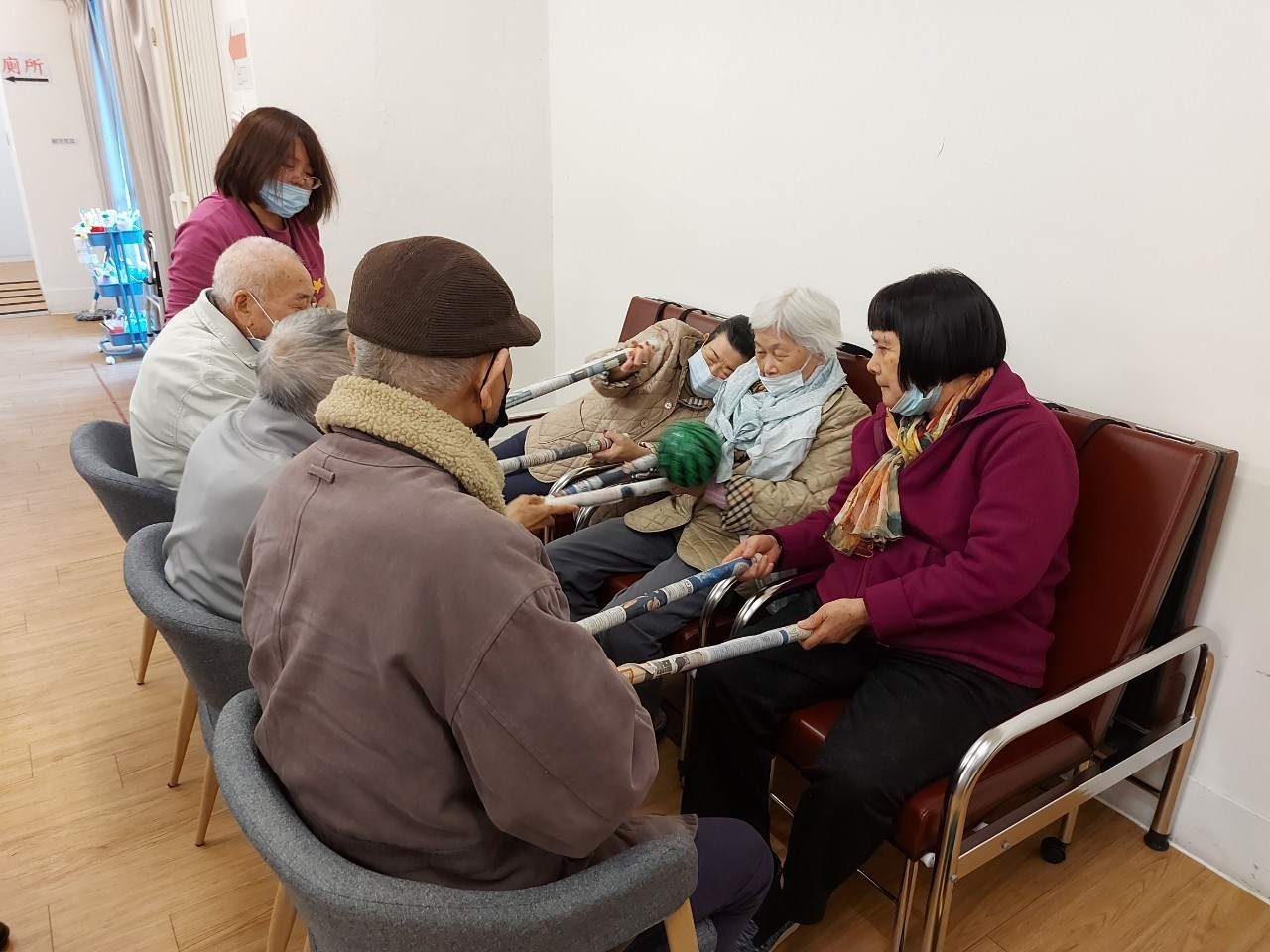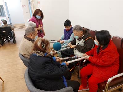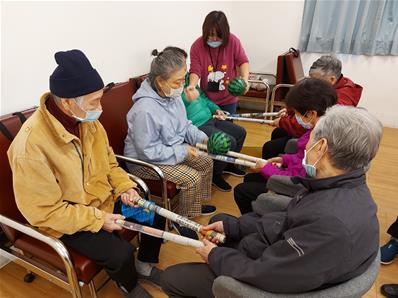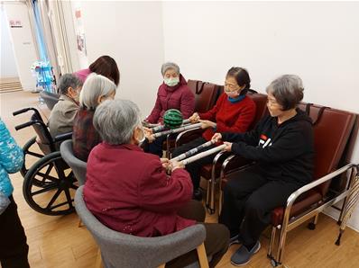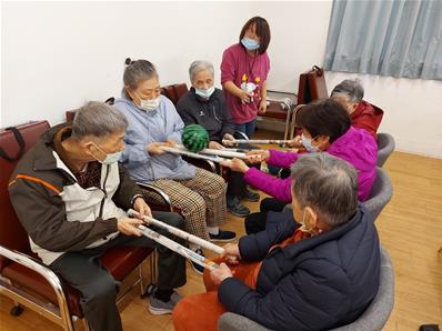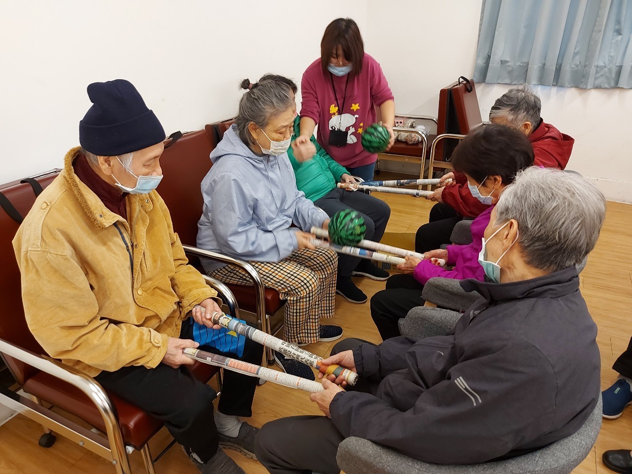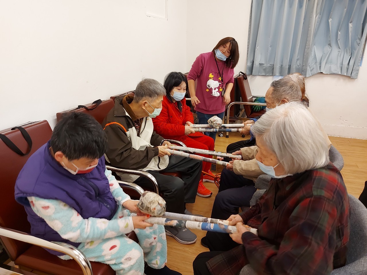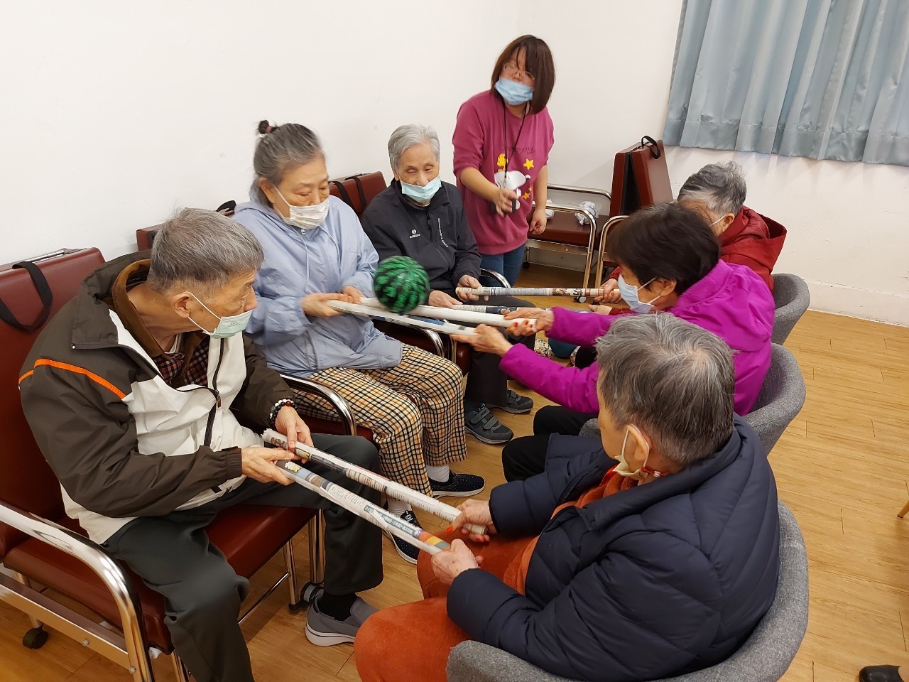分成兩組進行競賽,同儕之間同心協力完成遊戲,訓練手眼協調能力、上肢平衡動作。